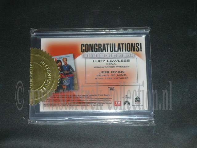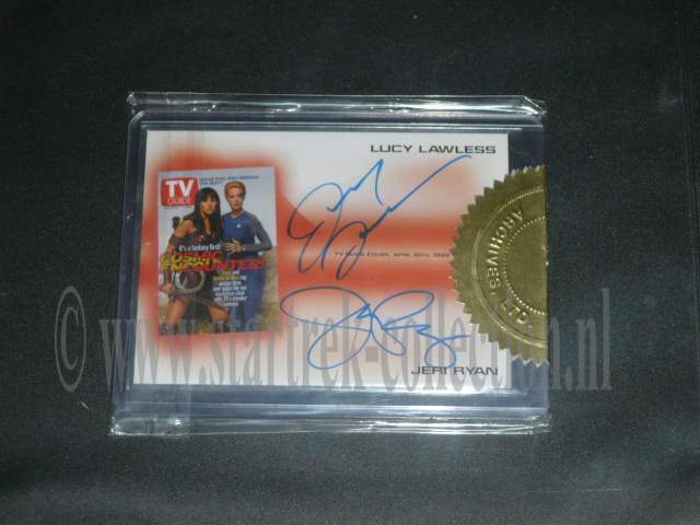 | Serie & Name: | Double Signature TV Guide Card (Lucy Lawless (Xena) and Jeri Ryan (Seven of Nine) |